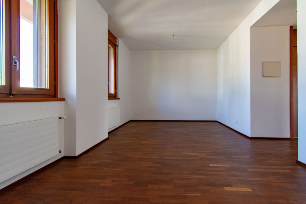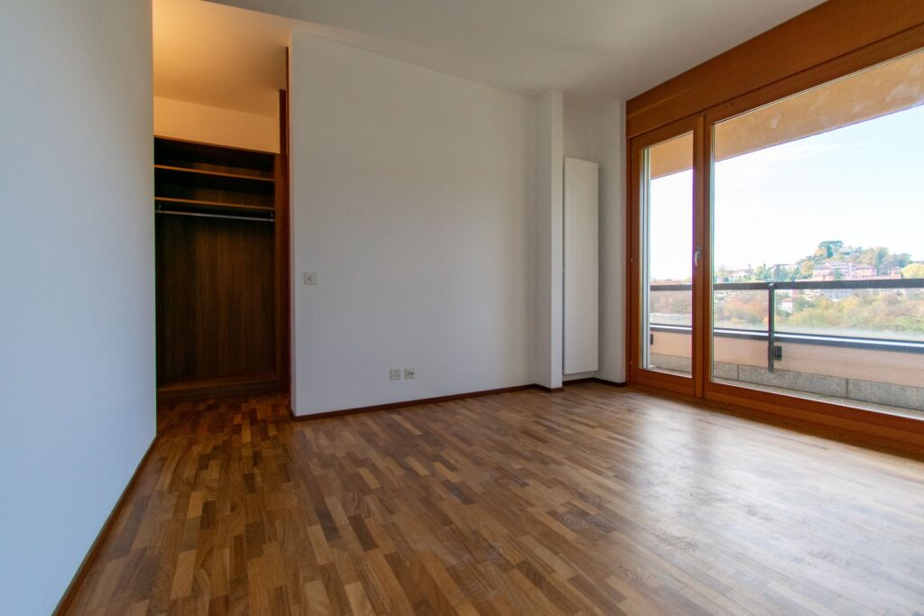 La zona notte comprende tre camere da letto e due servizi: un bagno finestrato con vasca e un secondo bagno con doccia, predisposto per l’installazione della colonna lavatrice/asciugatrice.