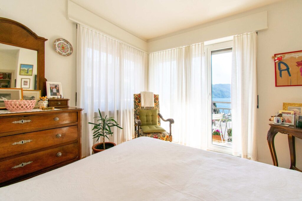 La zona notte comprende tre camere da letto, una delle quali con accesso a un balcone che gode di una piacevole vista lago.