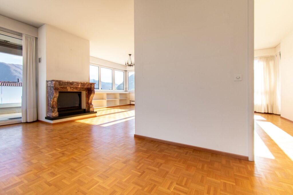 Il parquet che riveste tutta la casa crea un’atmosfera calda e accogliente, mentre le ampie vetrate e l’ottima esposizione assicurano che la luce naturale penetri in ogni angolo.