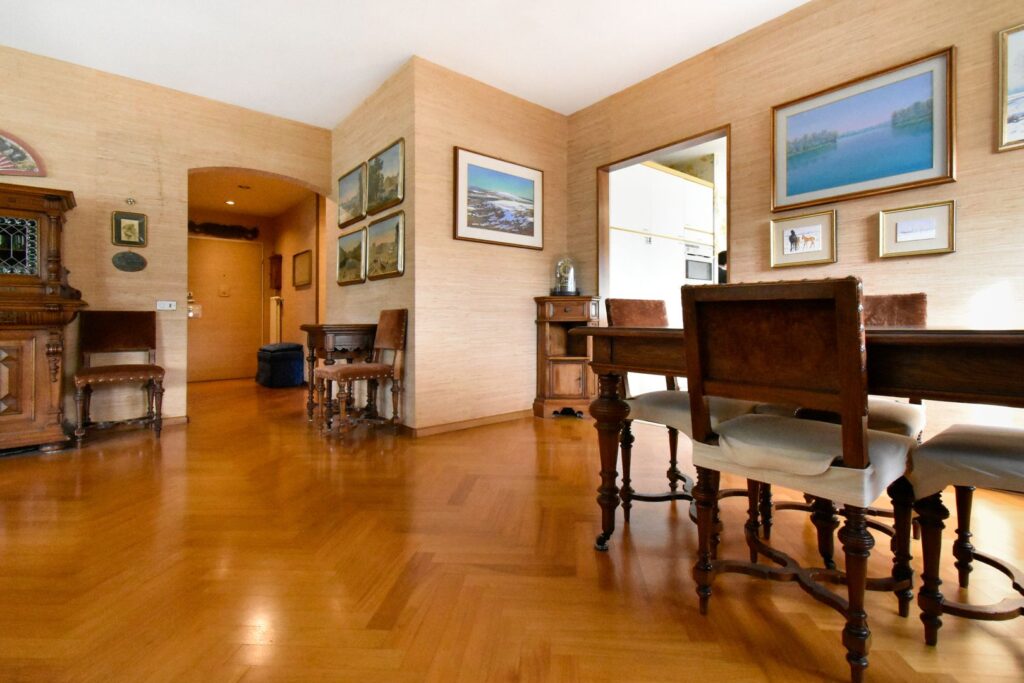 Questo appartamento dalla tripla esposizione presenta le finiture originali mentre il condominio è stato oggetto di continui interventi di ristrutturazione delle parti comuni (tetto, facciata con cappotto termico, balconi, ascensori e impianti di aerazione per cucine e bagni).