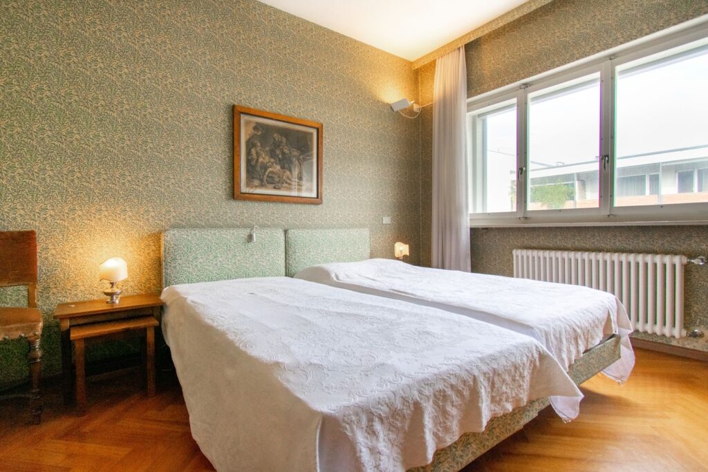 L’appartamento offre tre camere, una delle quali è separata dal soggiorno da una porta scorrevole ed è attualmente adibita a studio, uno spazio funzionale e luminoso che può essere facilmente trasformato in una camera da letto aggiuntiva, adattandosi alle esigenze di chi lo vive.