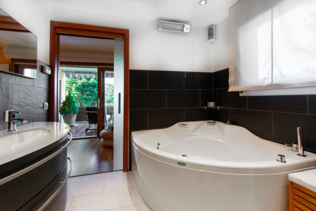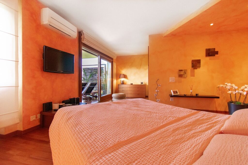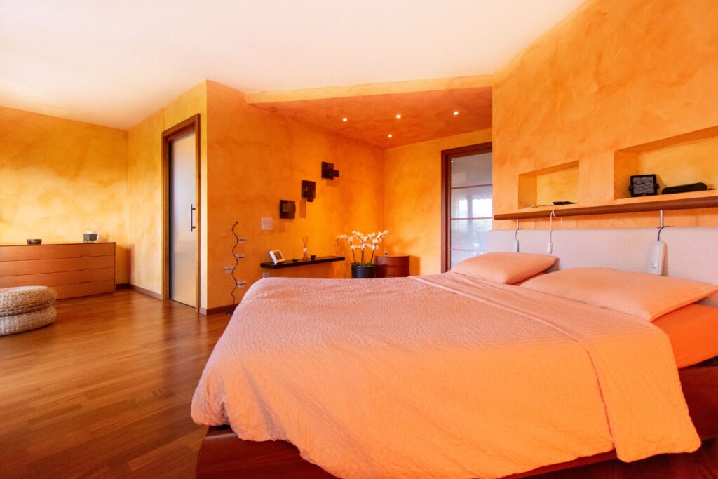 La camera matrimoniale offre l’accesso alla seconda terrazza, da cui si può godere di uno splendido panorama sul verde e sulle montagne circostanti. Gli spazi esterni sono perfetti per godersi la natura, mentre l’interno, caldo e accogliente, garantisce la massima funzionalità.
