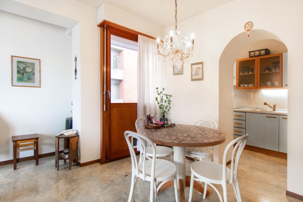 Gli spazi interni sono ben distribuiti e comprendono armadi a muro all’ingresso, un accogliente soggiorno, una camera da letto, un bagno e la cucina, che dispone di un balcone dedicato. Dal soggiorno e dalla camera da letto si può accedere al balcone principale, da cui si gode una splendida vista sul lago, ideale per vivere appieno la luce e l’atmosfera unica di questa zona.