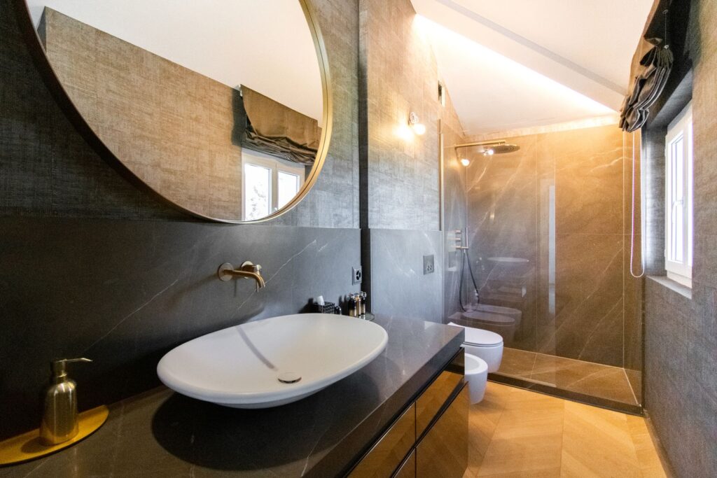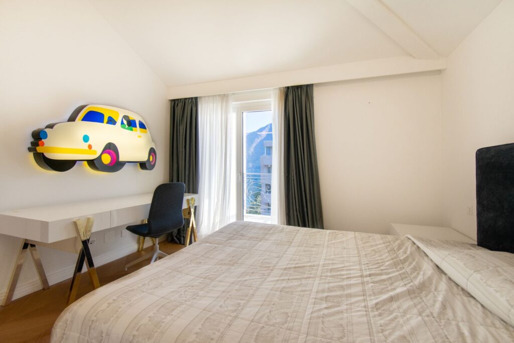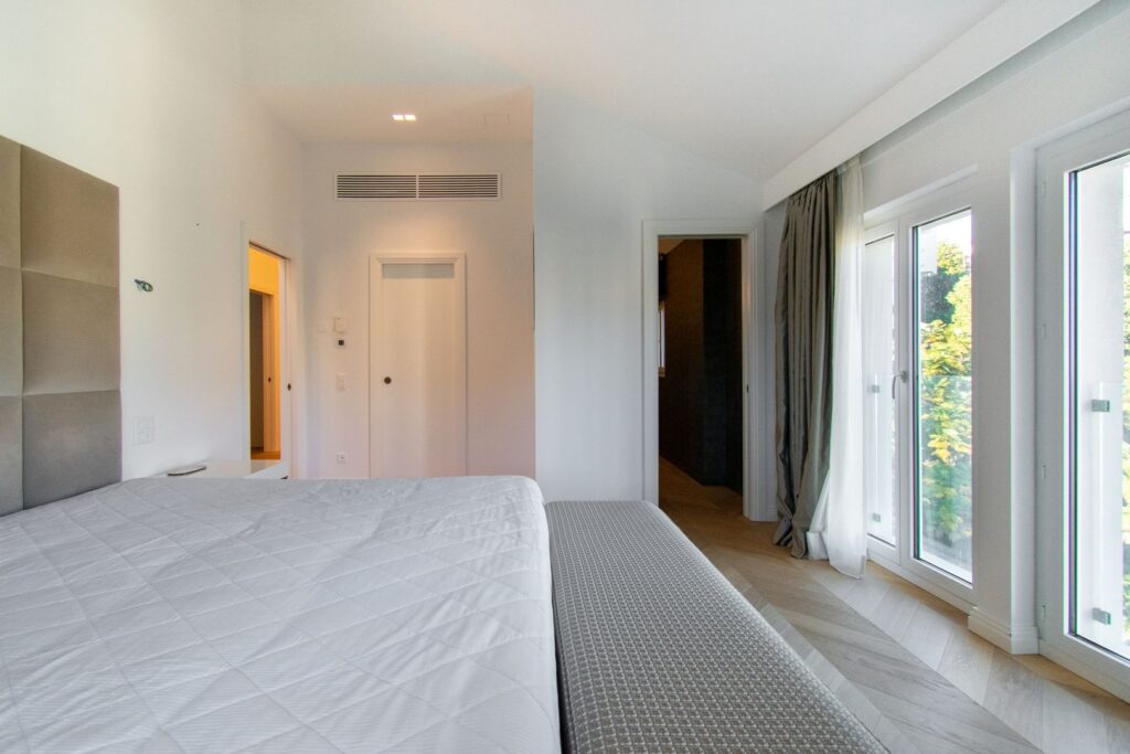 Salendo al piano superiore, la zona notte è una vera oasi di quiete e raffinatezza. La maestosa camera padronale è caratterizzata da un bagno en-suite, un’ampia cabina armadio e una bellissima terrazza privata affacciata sul lago. Accanto, due camere luminose – una delle quali con terrazza panoramica – condividono un elegante bagno, mentre una quarta camera con bagno privato accoglie gli ospiti nel massimo del comfort.